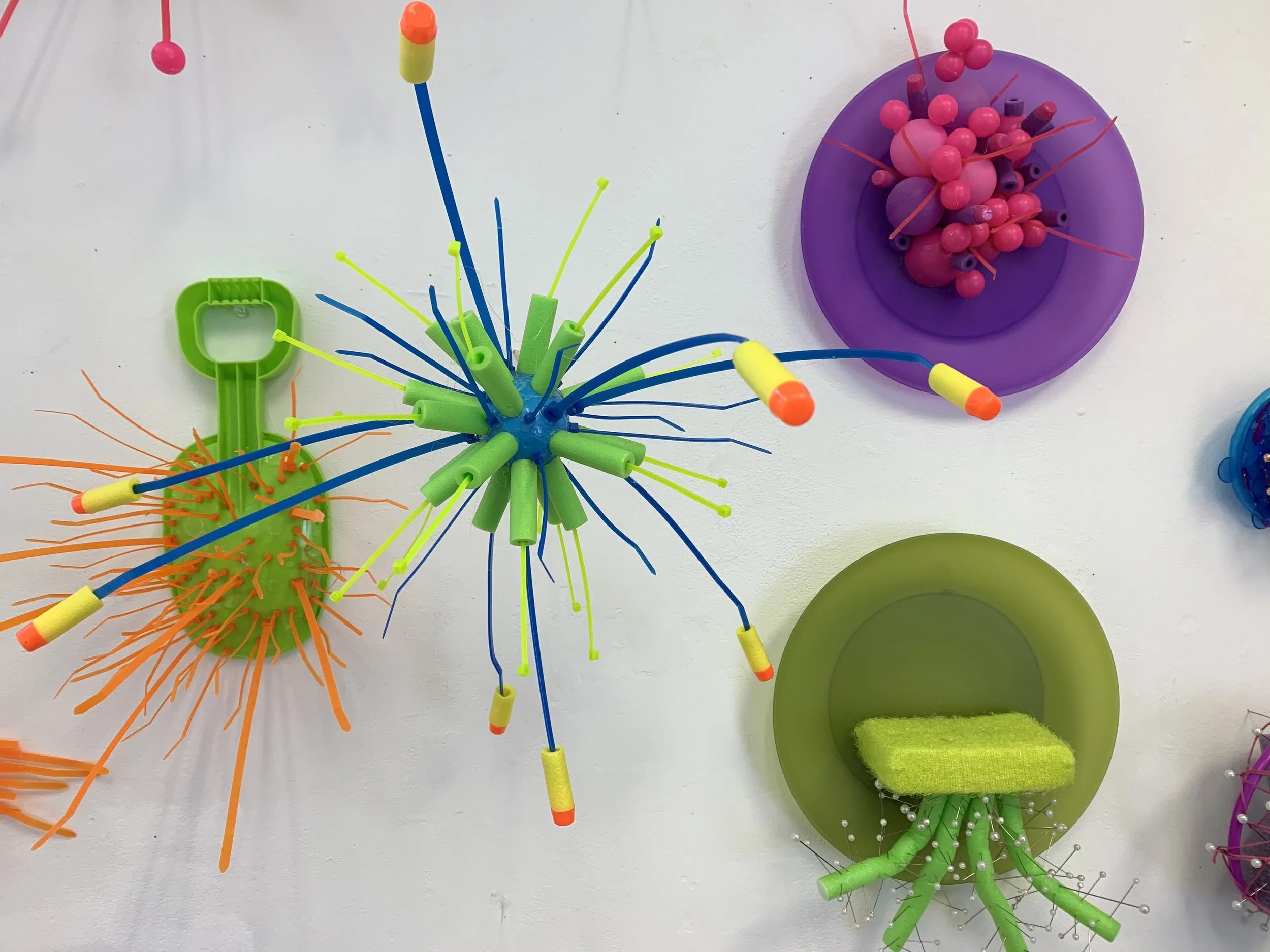 “Strains” is a playful exploration of the intersection between photography and sculpture, utilizing found objects and toys to create bright and vibrant works that resemble biological microscopic images. They are a glimpse into a fantastical world that is simultaneously familiar and otherworldly.